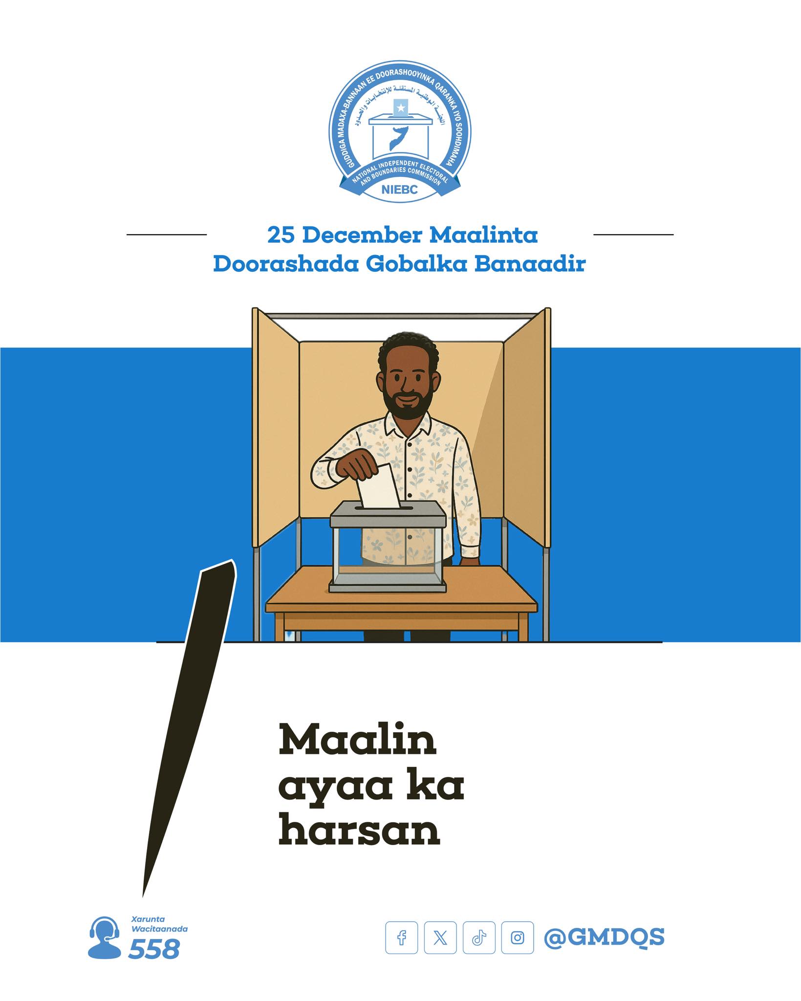 25-ka December waa maalin taariikhi ah oo u asteeysan shacabka ku nool Gobolka Banaadir, maadaama ay tahay maalinta si rasmi ah loo qabanayo doorashada Golaha Deegaanka Gobolka Banaadir. Hal maalin…